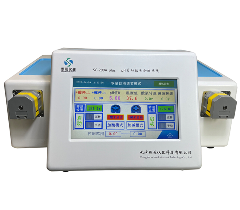本系統(tǒng)是長(zhǎng)沙思辰儀器研發(fā)團(tuán)隊(duì)最新研制開發(fā)的第三代高精度pH自動(dòng)控制系統(tǒng),為高等院校、科研院所實(shí)驗(yàn)室,中外研發(fā)企業(yè)及研發(fā)生產(chǎn)等部門精心設(shè)計(jì)制造的,并且擁有完全自主的知識(shí)產(chǎn)權(quán)。獲得了國(guó)家一項(xiàng)發(fā)明專利【ZL201410349779.8】及多項(xiàng)實(shí)用新型專利【ZL201721373766.X】;【ZL 201420406067.0】;【ZL201420406055.8】。整機(jī)采用PLC控制,并與定制的蠕動(dòng)泵聯(lián)機(jī)進(jìn)行加酸或加堿來自動(dòng)調(diào)節(jié)容器中溶液pH的預(yù)設(shè)值。是催化、制藥、化工、電鍍、生化、生物發(fā)酵、植物提取物車間,科院院所等實(shí)驗(yàn)室或生產(chǎn)中小試場(chǎng)所理想的pH監(jiān)測(cè)自動(dòng)控制系統(tǒng)。