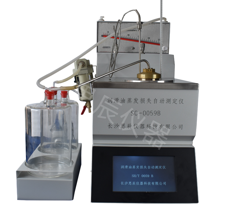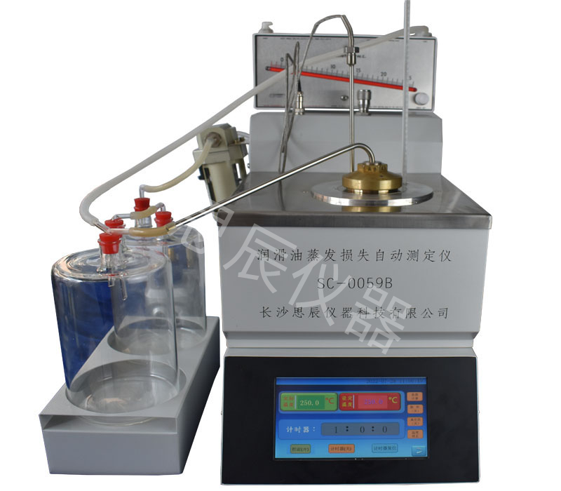 本儀器是根據(jù)標(biāo)準(zhǔn)的 SH/T0059《潤滑油蒸發(fā)損失測定法(諾亞克法)》及標(biāo)準(zhǔn)ASTM D5800所規(guī)定的要求設(shè)計制造的,適用于按 SH/T0059 B 法標(biāo)準(zhǔn)規(guī)定的方法,用于潤滑油和潤滑油基礎(chǔ)油。操作該儀器時將試樣置于蒸發(fā)損失測定儀中,在一定條件下加熱 1h,蒸發(fā)出的油正確由空氣攜帶出去。根據(jù)加熱前后試樣質(zhì)量質(zhì)量之差測定試樣的蒸發(fā)損失。