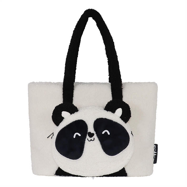 可愛熊貓卡通小巧旅行包毛茸茸小白毛絨雙肩包背包外出游玩小背包