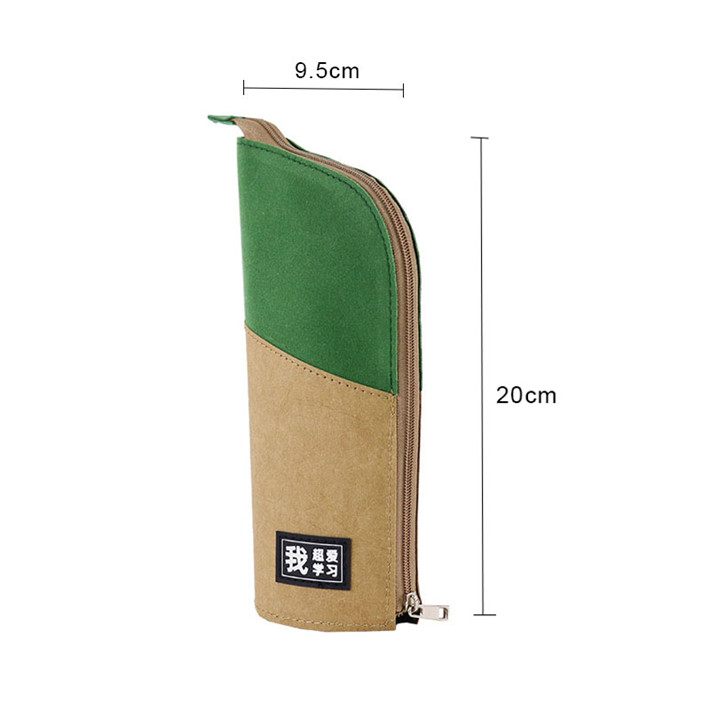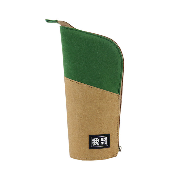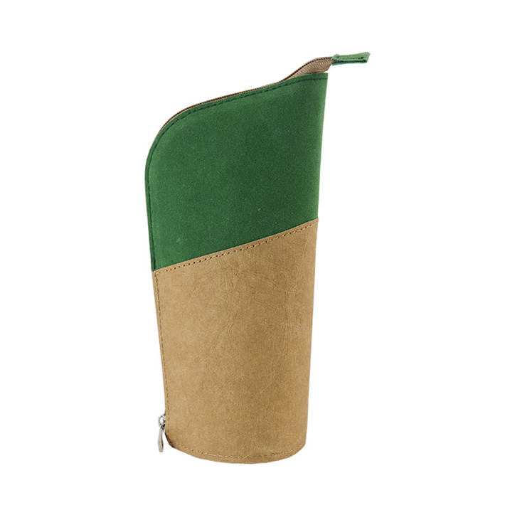 新款極簡主義站立筆筒多功能進(jìn)口牛皮紙拼接桃皮絨拉鏈包定制