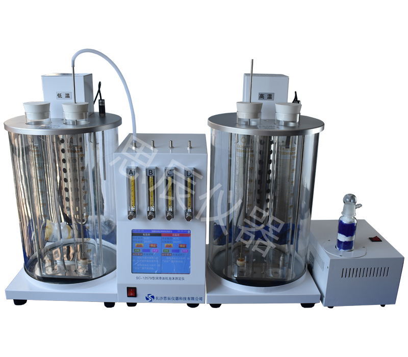 本儀器是根據(jù)標(biāo)準(zhǔn)GB/T12579《潤(rùn)滑油泡沫特性測(cè)定法》及標(biāo)準(zhǔn)ASTM D892研發(fā)設(shè)計(jì)制造,采用數(shù)字式 PID 溫控器控制浴槽溫度,通過(guò)電機(jī)攪拌使浴槽恒溫均勻(高溫槽 93.5℃,或低溫槽 24℃,控溫精度±0.1℃)。使用空氣泵、轉(zhuǎn)子流量計(jì)、氣體擴(kuò)散頭、計(jì)時(shí)器等,向裝有試樣的量筒內(nèi)、定時(shí)定量地通入空氣,測(cè)定試樣產(chǎn)生氣泡的體積。儀器外形美觀、使用方便。